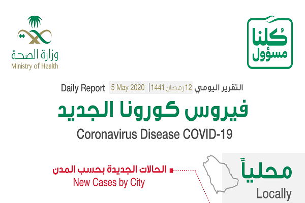 كشفت وزارة الصحة، عبر حسابها الرسمي بموقع التواصل الاجتماعي "تويتر" عن توزيع حالات الإصابة الجديدة بكورونا بحسب المدن من خلال إنفوجرافيك اليوم الثلاثاء.