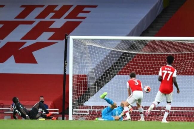 وفي الدقيقة 20 افتتح السنغالي ساديو ماني التسجيل لليفربول بعدما مرر فيرمينو كرة للمنطلق روبيرتسون الذي أرسل كرة عرضية أرضية داخل منطقة الجزاء، حولها السنغالي لهدف في شباك أرسنال.
