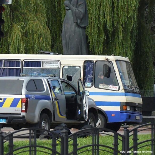 حيث ألقت الشرطة القبض على المشتبه به ، و الذي حدده جهاز أمن الدولة الأوكراني بأنه ماكسيم كريفوش البالغ من العمر 44 عامًا ، والذي استولى على الحافلة في مدينة لوتسك ، قائلًا أنه كان مسلحًا بالبنادق والمتفجرات.